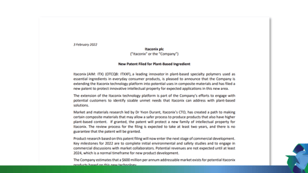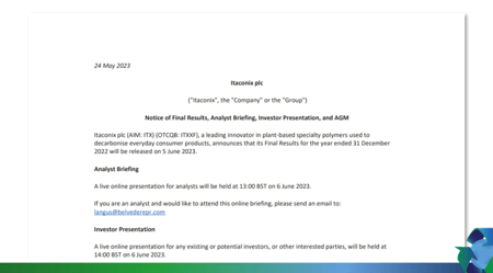 Itaconix plc (“Itaconix”)