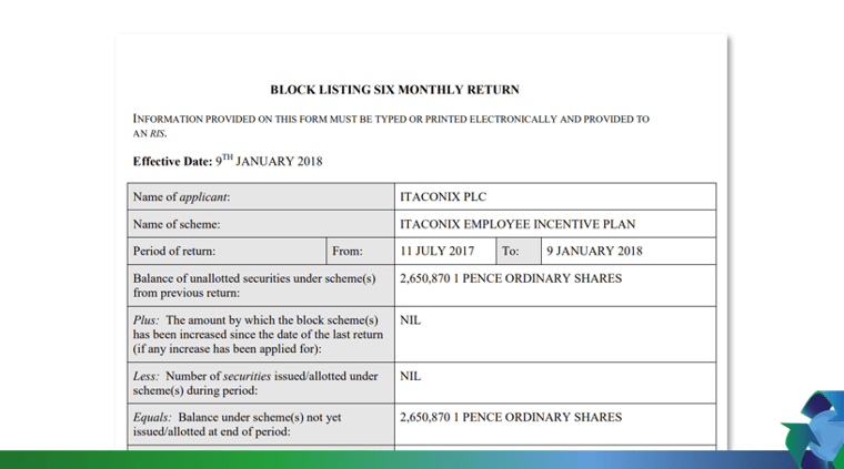 BLOCK LISTING SIX MONTHLY RETURN