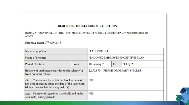 BLOCK LISTING SIX MONTHLY RETURN