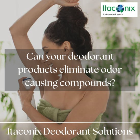 Brand managers and product formulators now have the capability to develop deodorant products that eliminate odor-causing compounds without relying on heavy fragrances. Itaconix ingredients rapidly bind to neutralize odors caused by sulfides, mercaptans, thioethers, amines, ammonia, and foot and body odors, making them undetectable to the human nose. These ingredients provide exceptional performance in both liquid and solid formulations. Additionally, Itaconix technology does not interfere with natural perspiration, cause skin irritation, or leave stains or residues behind.