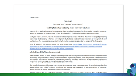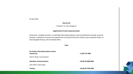 Financial Highlights Itaconix PLC Share Consolidation 15 August 2023