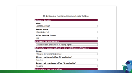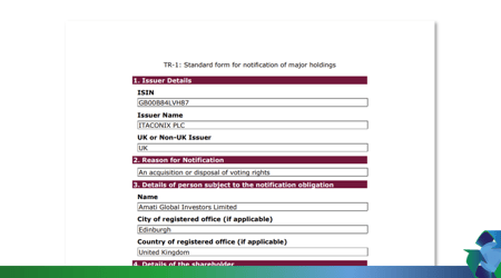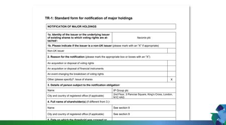 Investor News Itaconix Share Consolidation & Total Voting Rights Effective
