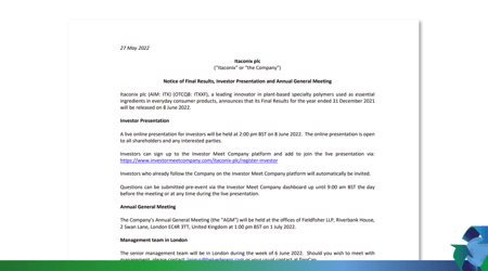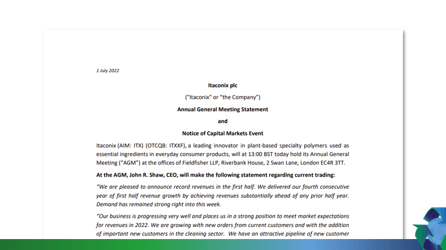 Investor News 2022 Annual General Meeting Statement and Notice of Capital Market Event