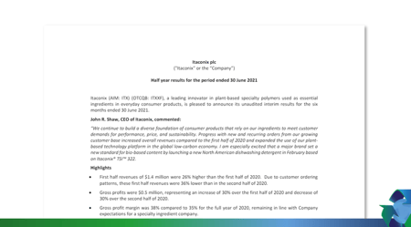 Itaconix continues to launch new products, gain commercial traction, generate revenue starts and conclude partnership deals: